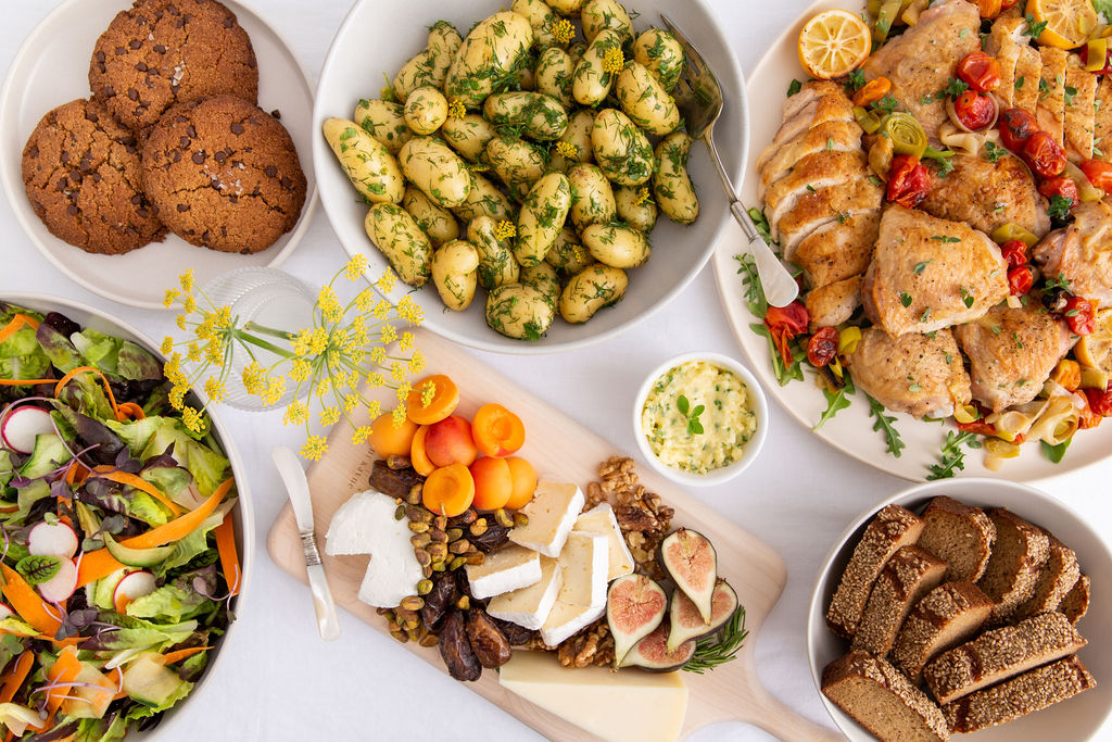 Whether you’re having a picnic, heading out of town, or hosting friends and family for dinner, this ready-to-serve meal for 6 is perfect to take on the go or serve in the comfort of your home. The meal arrives Friday afternoon so you are ready to head into your weekend without having to worry about grocery shopping, cooking and cleaning.